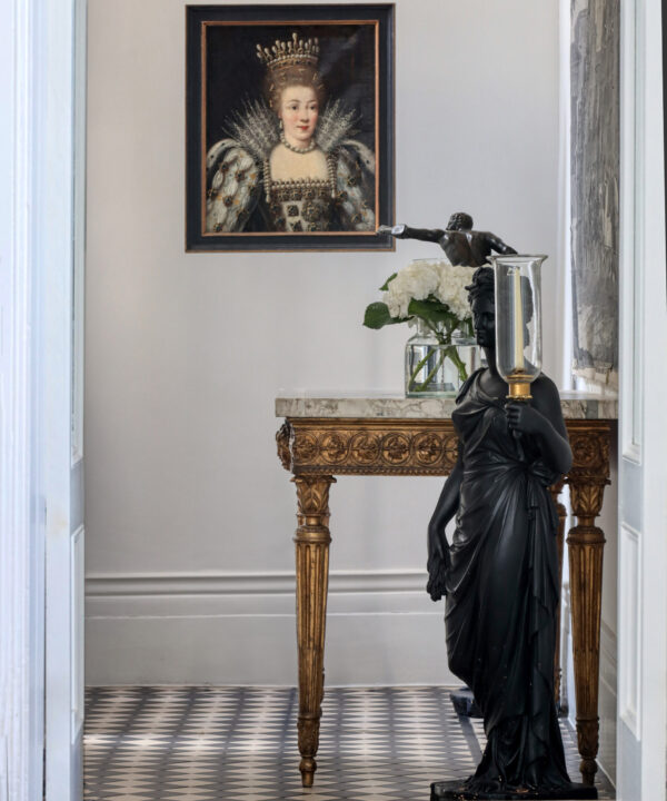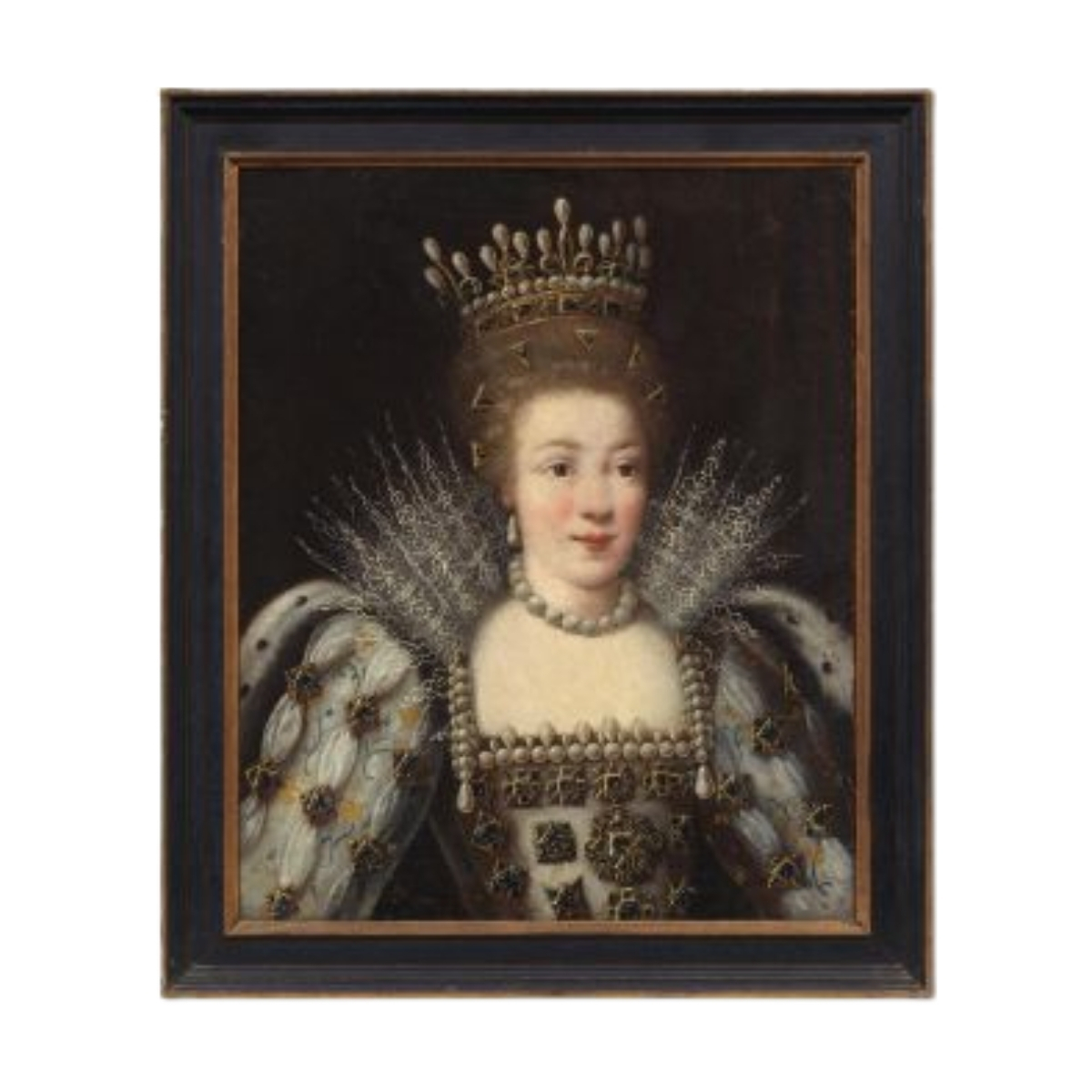 A striking early 18th Century oil on canvas Portrait of Louise Marguerite of Lorraine, Princess of Conti, appearing in a bejewelled dress.
